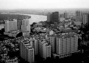 写真下:サイゴン・トレード・センター33階のラウンジからサイゴン川を望む。(写真:編集部)